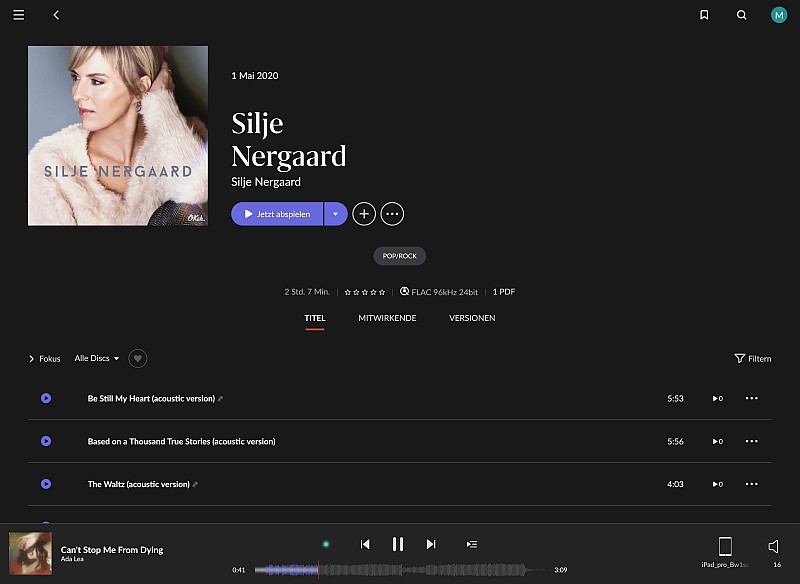 Was kann Roon? Im Prinzip alles und das ist noch nicht mal übertrieben. Zu den meisten Künstlern gibt es umfangreiche Information, z.B. wer bei der Aufnahme noch mitgespielt hat. Damit kann man sofort zu den anderen Künstlern navigieren und innerhalb kürzester Zeit spannt sich ein Mikrokosmos auf, der früher nur über aufwändige Recherche möglich gewesen wäre. Auf der Seite von Audiosaul gibt es umfangreiche Informationen runf um Roon. Die nahtlose Integration von Tidal und Qobuz setzt dem Ganzen die Krone auf. Erst damit sind die o.g. Verknüpfungen möglich, da die eigene "Offline"-Musik clever und unsichtbar mit den Onlineanbietern verbunden wird.